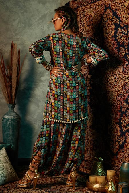 Multicolor kurta featuring tile print all over with gota embroidered lace hem