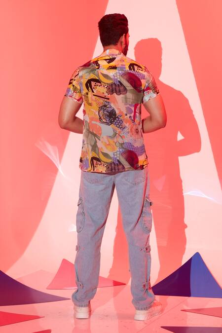 Multicolor half sleeve shirt featuring an abstract print and notched lapel collar