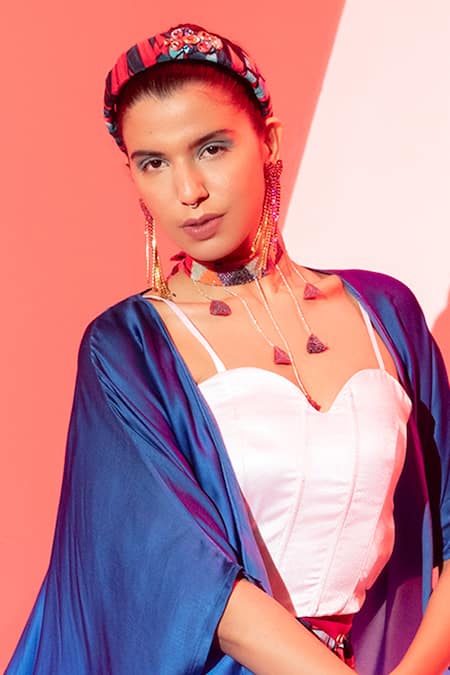 The cape, pant, necklace, gloves, headband, belt & earrings worn by the model are not for sale.