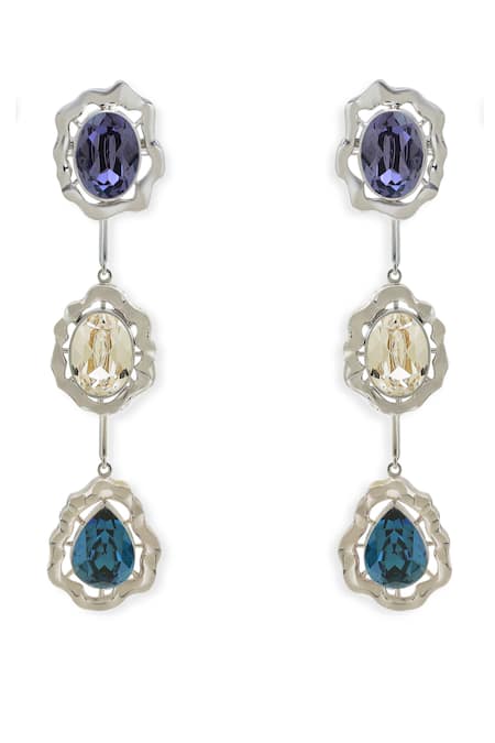 Blue designer earrings featuring a cascading design with multiple stones