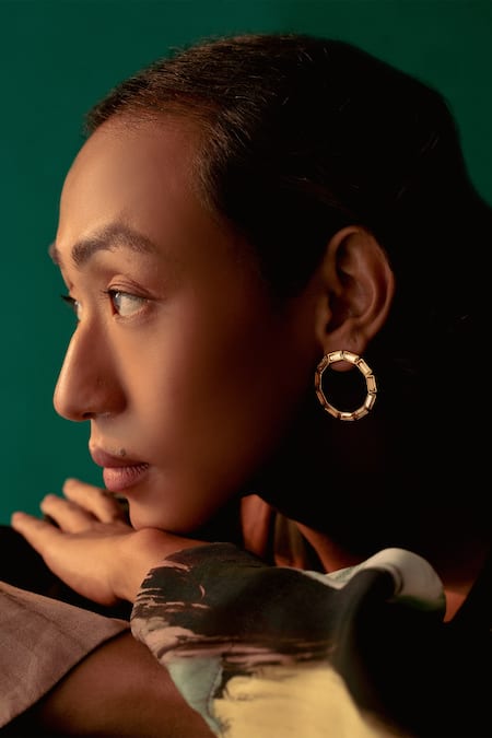 Gold circular shaped hoops featuring stone embellishments
