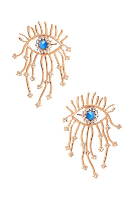 Gold Plated Crystals, Stones Evil Eye Studded Earrings