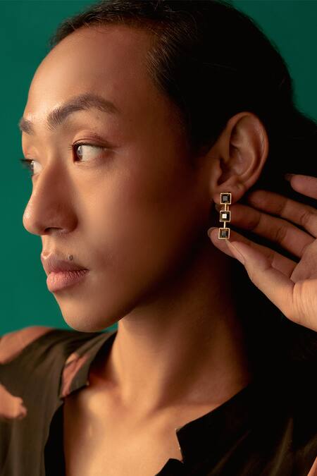 Grey geometric shaped earrings featuring stone embellishments