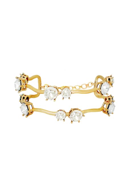 White layered bracelet featuring stone embellishments and a lobster clasp closure