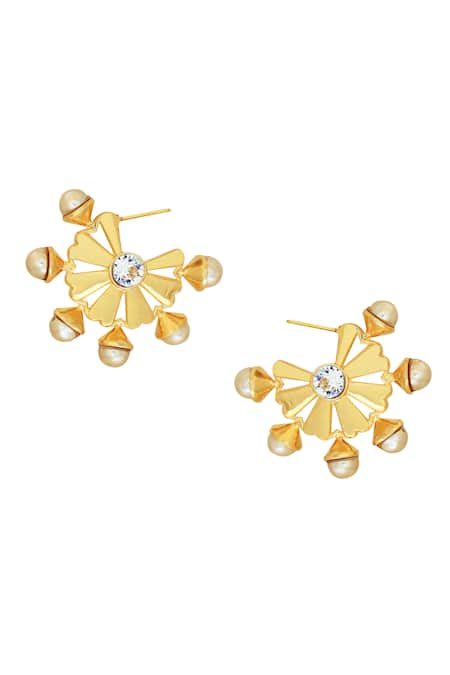 Gold Plated Stones, Pearls The Daisy Embellished Hoops