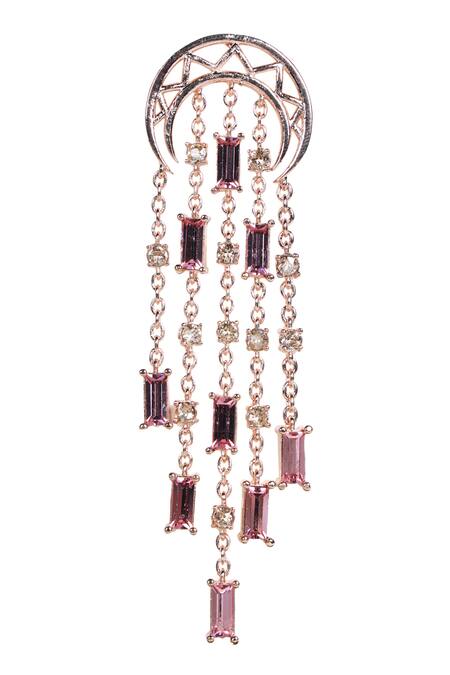 Inverted crescent moon motif top, Cutwork detail, Multi-chain danglers