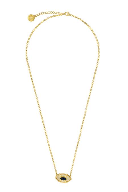 18kt gold plated chain necklace with evil eye blue sapphire stone pendant.