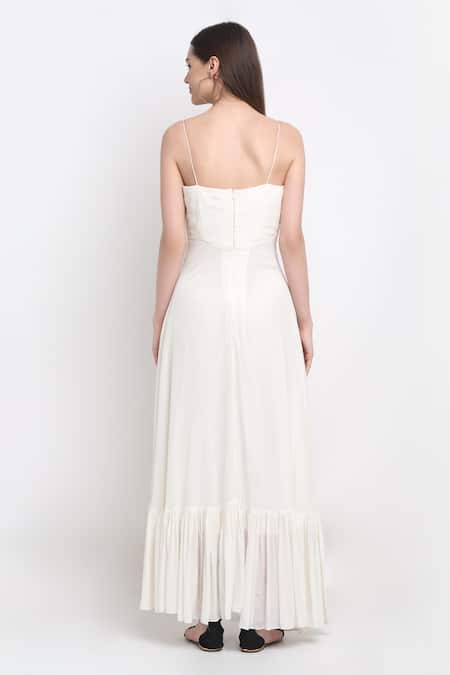 Ivory Crepe Embroidery Square Neck Hand Asymmetric Dress