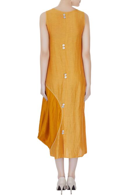 Buy_Ezra_Yellow Satin Linen Midi Dress_at_Aza_Fashions