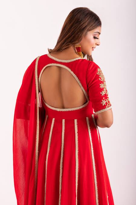 Buy_Kefi Collections_Red Viscose, Georgette, Lycra Embroidery Round Falak Hand Anarkali Pyjama Set_Online_at_Aza_Fashions