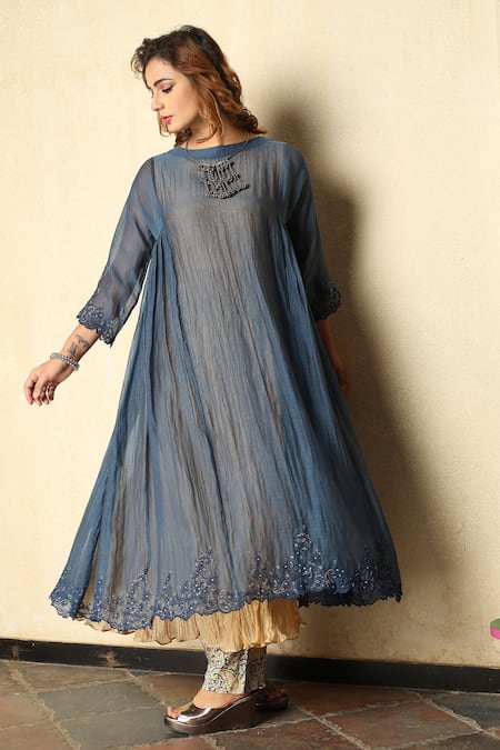 Buy_Falguni.Foram_Blue Inner Slip Crush Silk, Kurta Silk, Pant Mal And Set _Online_at_Aza_Fashions