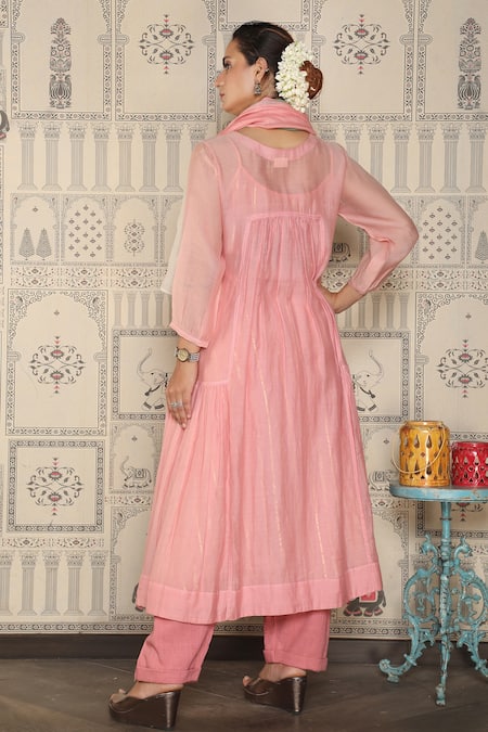 Kurta: Chanderi Silk, Scarf: Chanderi Silk & Pant: Organic Cotton, Slip: Zari Butti Mal