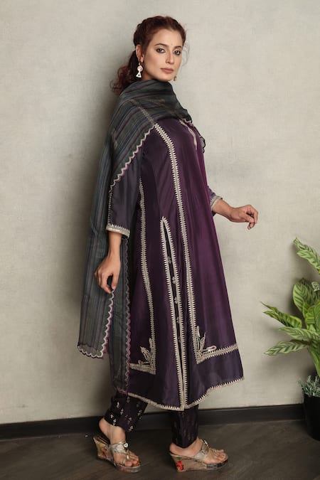 Buy_Falguni.Foram_Purple Kurta Dupion Silk, Pant Viscose Thread Notched Embroidered And Set _Online_at_Aza_Fashions