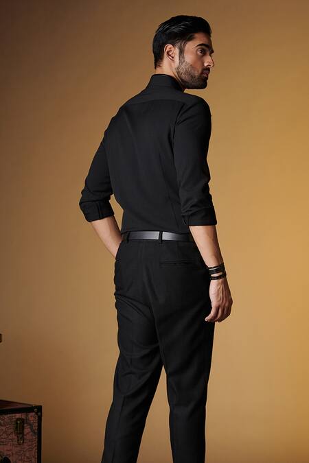 Buy_S&N By Shantnu Nikhil_Black Rayon, Faux Leather Fabric Flowers, Fringe And Rivets Embellished Shirt_at_Aza_Fashions