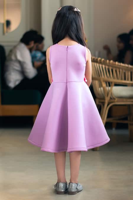 Lilac dress featuring 3D flower placement embroidery on the waistband