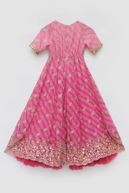 Pink Georgette Sequins Bandhej Pattern Jumpsuit