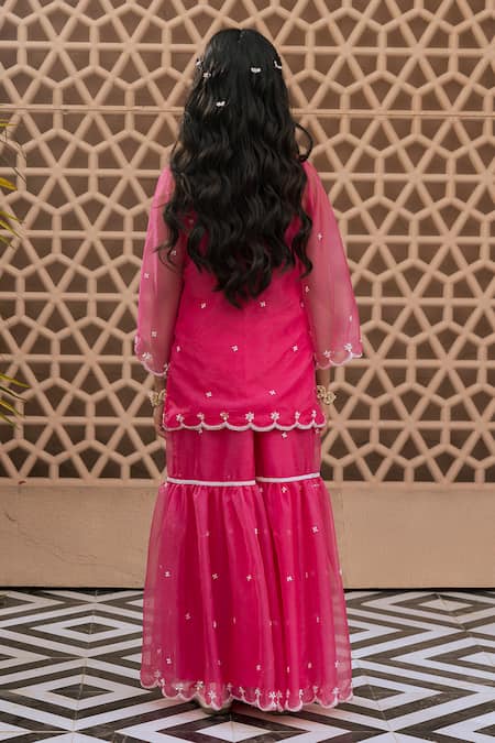 Buy_Fayon Kids_Pink Organza Embroidery Butti Work Kurta Sharara Set _at_Aza_Fashions