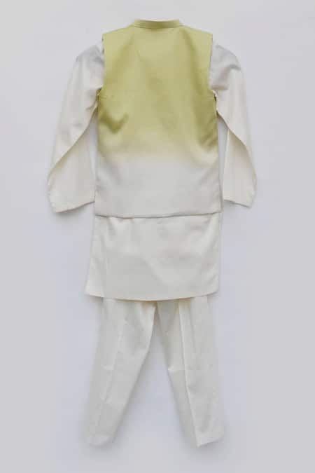Buy_Fayon Kids_White Cotton, Silk Brooches Green And Kurta Set With Nehru Jacket _Online_at_Aza_Fashions