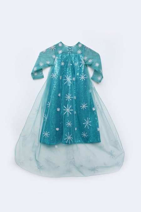 Blue Net Sequins Elsa Snowflake Embroidered Dress