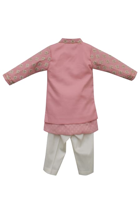 Pink Cotton, Silk Embroidery Sherwani Kurta Set