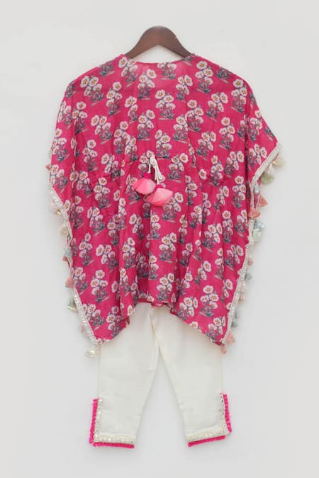 Buy_Fayon Kids_Pink , Satin Tassels Floral Print Kaftan And Pant Set _Online_at_Aza_Fashions