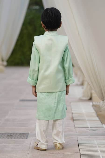 Buy_Fayon Kids_Green Silk Sequins Floral Embroidered Bundi Set _at_Aza_Fashions