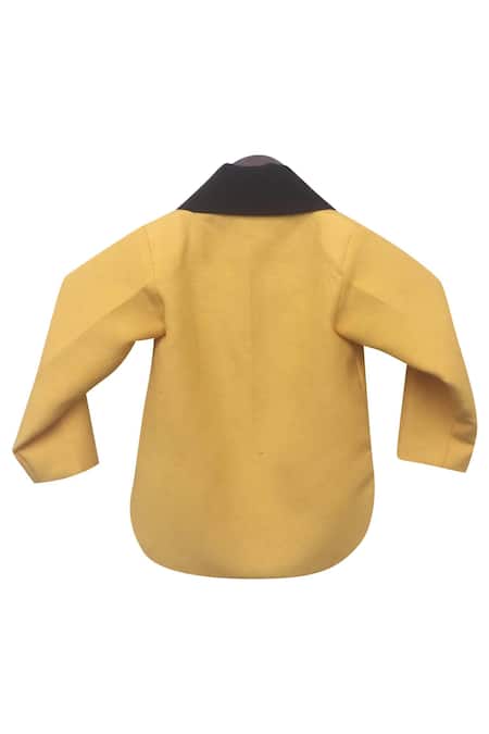Yellow linen jacket featuring a shawl collar and full sleeves
