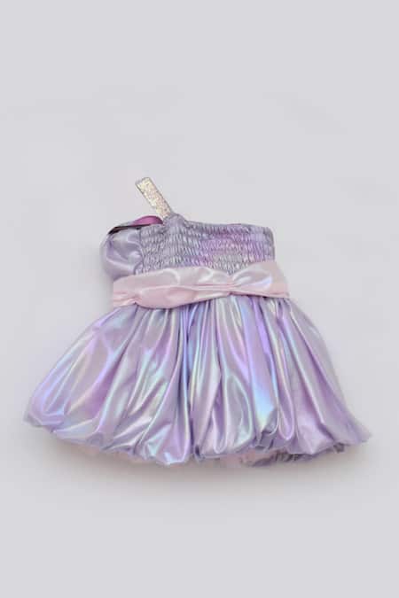 Purple frock featuring an asymmetric neckline and one shoulder sleeve