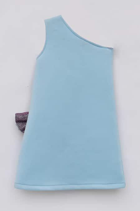 Blue Lycra Bows Asymmetric Dress With Shimmer