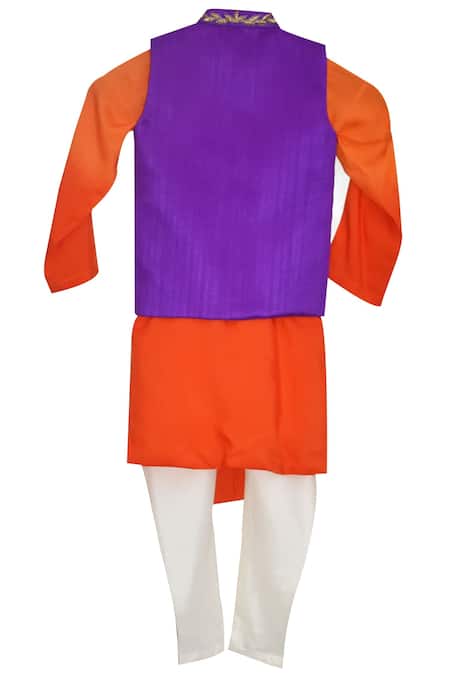 Buy_Fayon Kids_Orange Cotton Embroidery White Kurta Set With Purple Nehru Jacket _at_Aza_Fashions