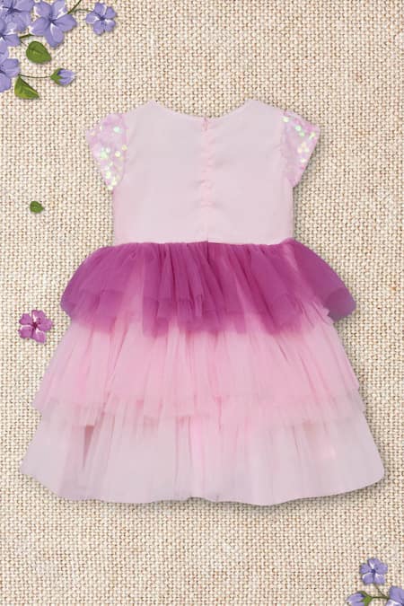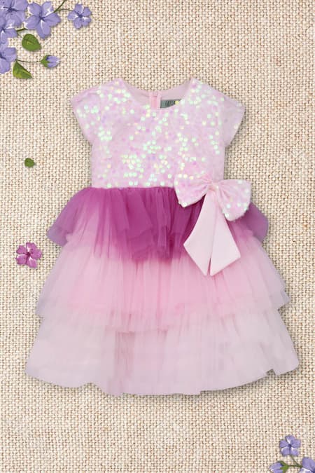 Pink layered dress featuring a sequins embroidered bodice and a 3D bow attached