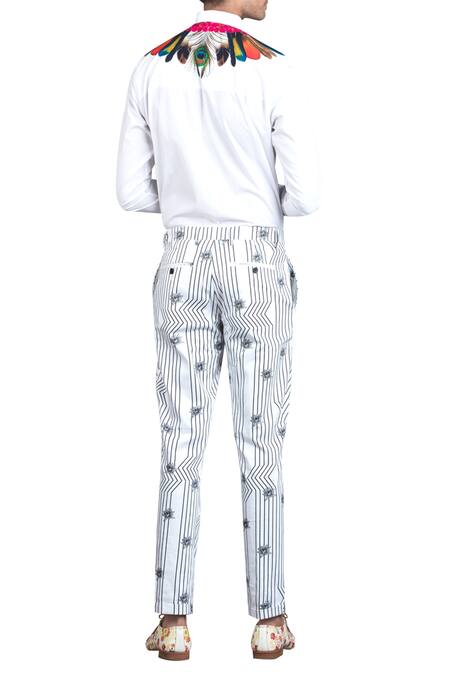 Buy_MR. Ajay Kumar_White Cotton Feather Print Collar Full Sleeve Shirt_Online_at_Aza_Fashions
