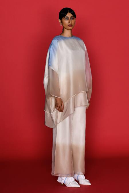 Multi Color Silk, Organza Round Neck Sky And Ombre Top