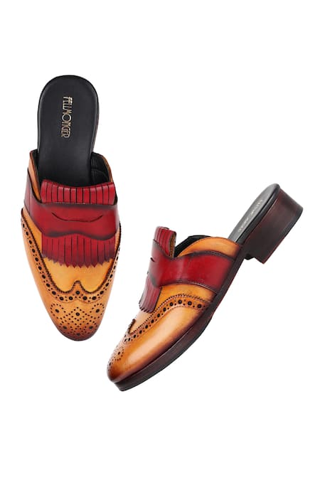 Buy_Fellmonger_Brown Textured Leather Mules _Online_at_Aza_Fashions