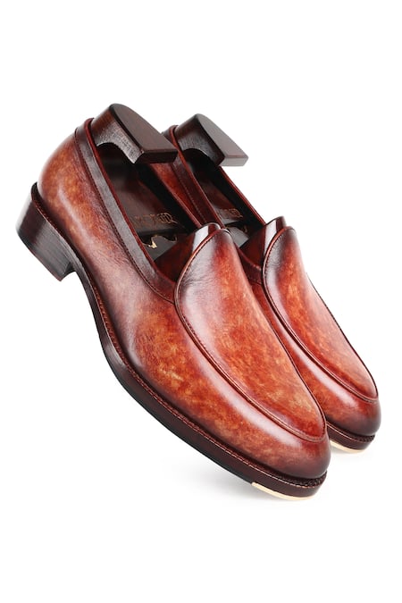 Buy_Fellmonger_Brown Stitchline Thread Mirror Glossed Marble Patina Belgian Loafers _Online_at_Aza_Fashions