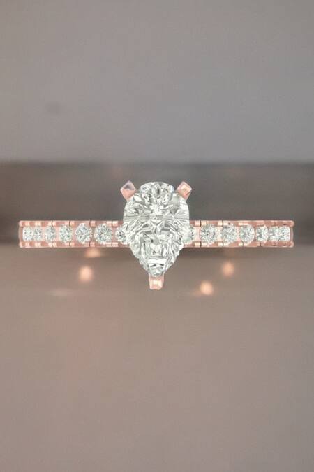 Rose Gold Imitation Diamonds 14kt Pear And Round Shaped Lab Ring