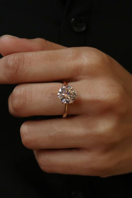 Yellow Imitation Diamonds 14kt Gold Round Shaped Lab Ring