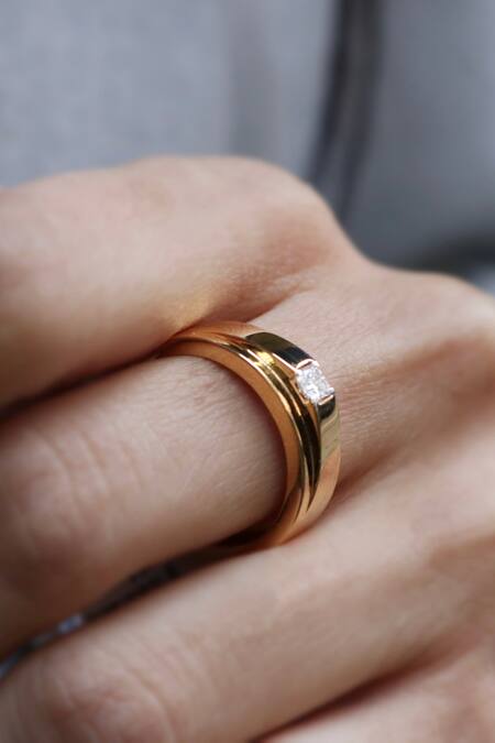 Yellow Imitation Diamonds 18kt Gold Lab Embellished Band Ring