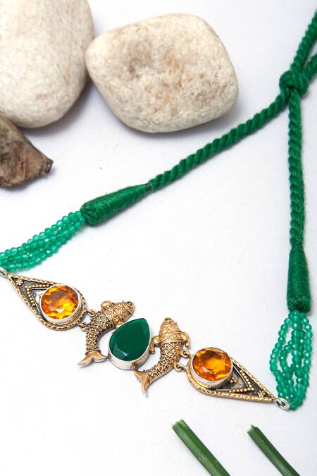 Buy_Neeta Boochra_Multi Color Green Onyx And Orange Stone Embellished Fish Choker Necklace_at_Aza_Fashions