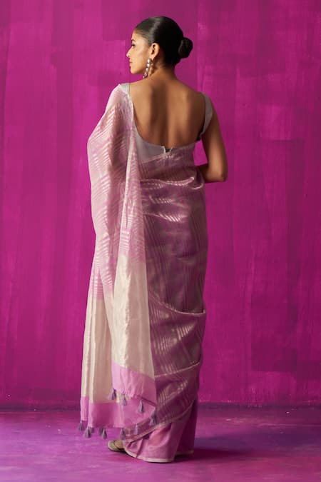Purple Chanderi Tassels Shabana Stripe Detailed Saree With Running Blouse Piece