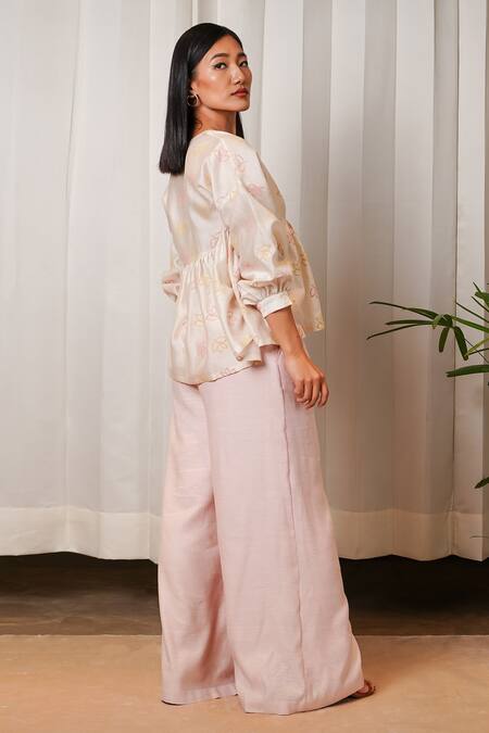 Pink Crepe, Slub Chanderi Plain Flared Pant