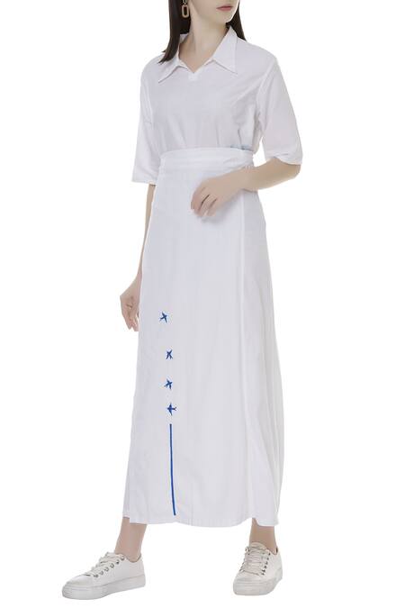 Buy_Rouka By Sreejith Jeevan_White Cotton Flared Skirt_Online_at_Aza_Fashions