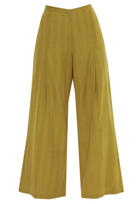 Yellow Cotton Flared Striped Pants