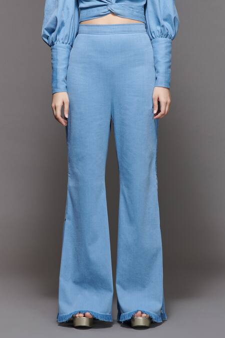 Buy_S&N By Shantnu Nikhil_Blue Flared Trouser_Online_at_Aza_Fashions