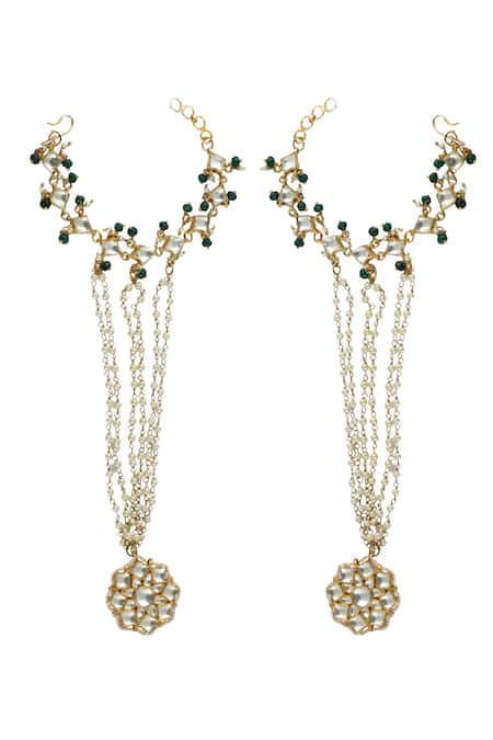 Gold Plated Pearls, Beads Floral Hathphools Set Of 2