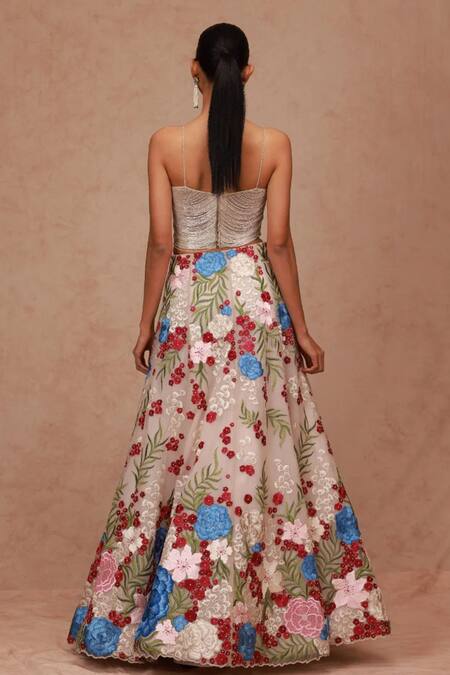 Multi Color Tulle Embroidery Floral Bunch Skirt
