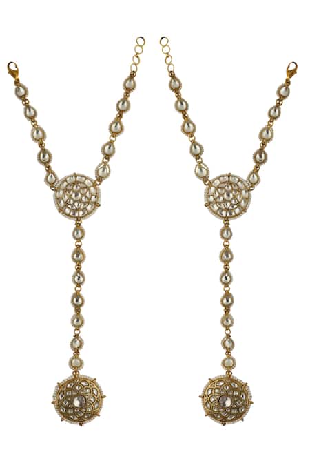 Buy_Riana Jewellery_Gold Plated Beads, Stones Floral Carved Haathphool Set _at_Aza_Fashions