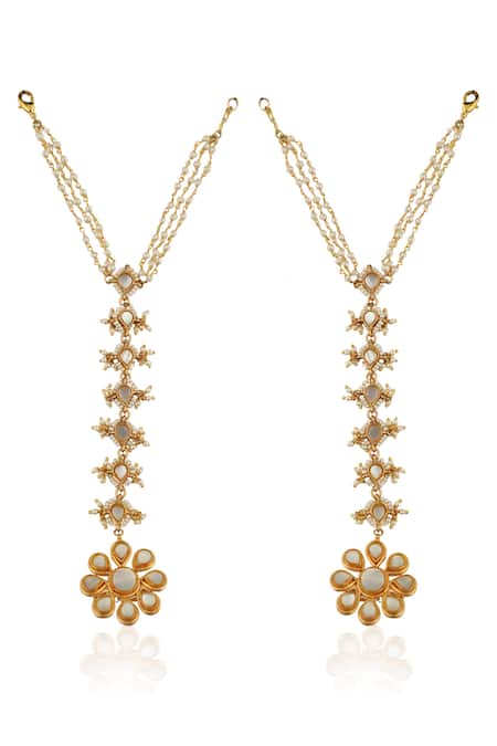 Buy_Riana Jewellery_Gold Plated Pearls, Diamonds Floral Embellished Hathphools - Set Of 2 _at_Aza_Fashions