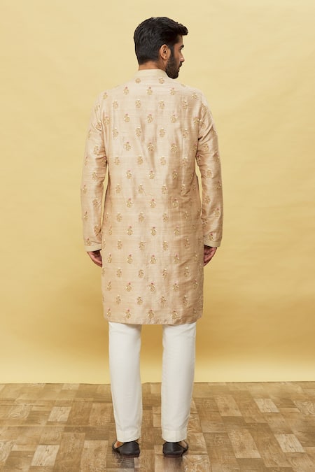 Beige Raw Silk Embroidery Cord And Resham Floral Kurta