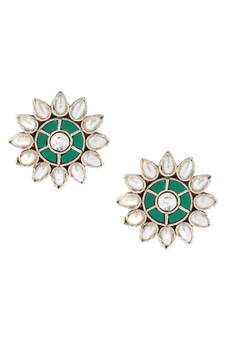 Buy_Sangeeta Boochra_Silver Plated Stones Floral Motif Handcrafted Studs _Online_at_Aza_Fashions